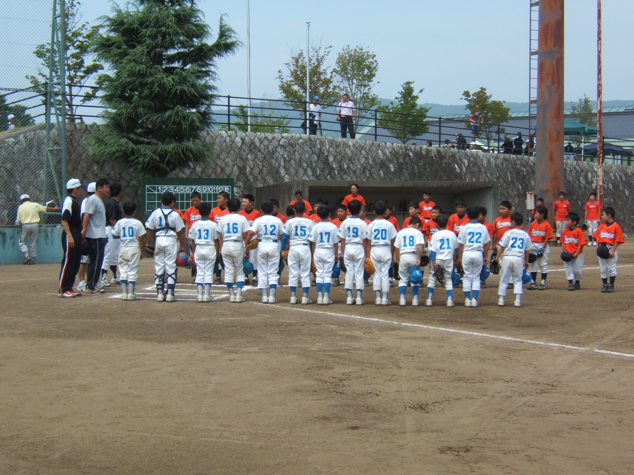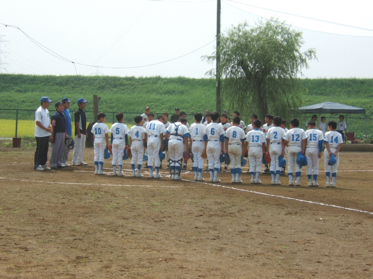 準決戦6回時間切れ同点特別ルールで残念!! 負けちゃいました^^でもよく頑張ったですよ。。。 暑さに勝ったが勝負には。。。 サインミスや勝負どころのあと、一本が・・・ でも今大会打撃練習のかいもありつながったね(笑) これもコーチ、監督の指導のおかげですね^^ 夏休みになりました。。。 体調管理。。。宿題。。。練習。。。お祭り。。。 楽しみが沢山^^宿題も選手諸君頑張れよ。。。 今頑張れば秋にはいい思い出がありそうな予感が・・・ 約束です。。。夏休みの宿題を早めにおわそうね。。。 快晴に恵まれて大会開会式 第28回岩瀬の大会が開催され4ブロック にわかれて熱戦が繰り広げられました。 新治スポーツ少年団(強豪) 熱い戦いの始まりでした。。。 5回に追いつかれて9-9のハラハラ試合 5回にミスが集中し応援団もドキドキでした。。。 勝ってよかったより負けなくて良かった(笑) ホームラン5本でましたよ頑張った。。。 対太田戦 2回戦 P5年中村の初めての完投勝利 良く頑張った。。。 内容的にはミスもあったが安心して見ていられたね。。。 ホームラン連発どうしたの今日は(笑) というわけで、19日の準決、決勝のベスト4での戦いお面白そう 本当は塩原に合宿予定返上にて戦いに挑みます。。。 終わってから温泉旅行です。。。 試合前整列です。。。 対岩瀬西戦圧倒的パワーで強かった。。。 残念ですけど負けました。。。 僕もちょいと反省しないと思う場面も しかしチームの子供達を守るのも、 自分たち役目。最近の審判コールに疑問あり。。。